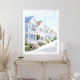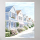 Podrá disfrutar del encanto de un día de verano junto al mar, con este poster delicioso que cuenta con una hilera de cabañas costeras pintadas en pastel. Este ilustracion de color agua, acentuado por los toldos a rayas, los parterres florales y los cielos azules suaves, evoca la alegría tranquila de vivir junto a la playa. Perfecto para añadir un toque fresco y alegre a su casa, oficina o escapada de vacaciones. Mostrado en 16x20 con estampado blanco y marco. Otros tamaños disponibles. También disponible con o sin encuadernación y acoplamiento.