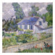 Casas en Auvers/Casas en Auvers. Vincent Willem van Gogh. Un bonito paisaje veraniego. En un jardín verde hay una casa con tres ventanas y un techo azul. Hay árboles en el fondo. Las nubes cruzan el cielo azul. Reproducción de obras famosas de imágenes artísticas de dominio público.