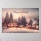 Experimente la belleza intemporal de una "Villa pacífica de invierno" con nuestro cautivador poster. Esta exquisita obra de arte te transporta a un pueblo cubierto de nieve enclavado en el interior de un bosque sereno. Alrededor de los pinos, sus ramas llenas de nieve brillante, crean un toldo protector sobre las encantadoras casas de madera con sus techos de paja. Siéntanse libres de cambiar el mensaje de "Paz en la Tierra" a cualquier palabra o faraón que deseen, o simplemente borrar el mensaje si desean tener un fondo