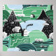 Póster Casas escandinavas, árboles, ilustracion montañoso