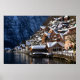 Impresión poster de las fachadas de las casas de madera en la orilla del lago de Hallstätter Ver lago bajo una capa de nieve fresca en invierno en Hallstatt, Austria.
