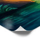 La IA creó una interpretación a partir de mi descripción que representa la puesta de sol detrás de una cascada como sus colores claros en el paisaje circundante mientras los árboles iluminan los bordes del río.
