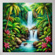 Cascada tropical en cascada entre exuberantes zonas verdes y plantas vívidas creando un tranquilo paraíso natural.