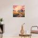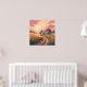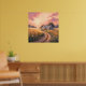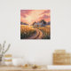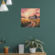 Obra de una casa de campo con un sol resplandeciente en el fondo. Una pintoresca cabaña de piedra bañada en la cálida luz mágica de la puesta de sol o de la salida del sol. Un sinuoso camino conduce a través de un campo de hierbas altas y doradas y delicadas flores silvestres hacia el cálido resplandor desde las ventanas. Esta obra de arte evoca una sensación de paz, encanto rústico y la simple belleza del campo a su hora más encantadora. Una casita de campo aislada enclavada en un paisaje soleado. Los suaves tonos del cielo se derriten en el campo dorado, guiando tu atención a la acogedora vivienda que parece susurrar relatos de momentos tranquilos y de vida gentil. Ideal para disfrutar de la tranquilidad de cualquier habitación. Esta ilustración se puede personalizar, imprimir y descargar.