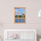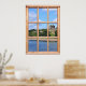 Este antiguo castillo data de la época medieval. El castillo goza de una magnífica ubicación frente al mar y tiene una pequeña playa de arena más abajo. La foto fue tomada en un día de verano, con cielo azul y nubes esponjosas. Esta fascinante escena se ve a través de la estructura de madera de una ventana falsa que crea la ilusión de una perspectiva histórica desde la habitación.