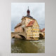 Poster de los Altes Rathaus o del antiguo ayuntamiento de Bamberg, construido en el centro del río Regnitz, en la Alta Franconia, Baviera, Alemania, con fachada cubierta de frescos coloridos.