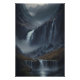 Un paisaje épico e impresionante donde una gran cascada se desploma a través de paredes rocosas oscuras y cubiertas de musgo. La densa niebla y la luz suave crean una atmósfera misteriosa y dramática, evocando el poder crudo de la naturaleza y un sentido de grandeza ancestral. Una sensación de paz y admiración se mezcla con el imponente poder de la cascada.