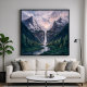Una cascada que fluye entre dos montañas. Obra de arte que representa la impresionante belleza de este paisaje montañoso. Una poderosa cascada cae por un rocoso acantilado, alimentando un río tranquilo que serpentea por un valle verde y exuberante. Los picos con techo de nieve suben a la distancia bajo un cielo dramático, creando una escena de grandeza y serenidad. Esta impresionante obra de arte captura un majestuoso valle de montaña donde una cascada importante ocupa el centro de la escena. El agua en cascada, enmarcada por imponentes picos nevados y bosques verdes, añade un elemento dinámico fresco a la escena. Traiga la belleza de la naturaleza a casa con esta impresionante obra de arte. Esta ilustración se puede personalizar, imprimir y descargar.