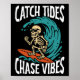 Póster Catch Tides Chase Vibes Skeleton Surfer Beach