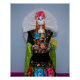 Esta Catrina, festiva y elegante, está vestida en un auténtico Tehuana bordeado de huipil y falda con un resplandor, collares ahogadores y pendientes de fibra. Esta es una versión diferente y más tradicional de la popular Calavera Catrina.