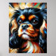 Celebrate the regal charm of the Black and Tan Cavalier King Charles Spaniel with this vibrant acrylic style art print. Known for their noble lineage and affectionate nature, this toy breed is captured here in a bold and modern palette. The artwork features the classic "King Charles" markings, including a rich raven black coat highlighted by warm mahogany tan accents. Every detail is rendered in a textured, high gloss acrylic aesthetic that adds depth to the design. This piece is perfect for adding a pop of color to any room, whether you are a long-time Cavalier parent or looking for a unique gift for a dog lover.