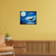 Si amas a los pájaros, este poster de halcones es el que quieres. Cazando a Hawk en círculos sobre algunas montañas nubladas mientras la luna amarilla llena ilumina el cielo nocturno.