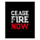 Cesen Fire Now blanco rojo negro angustiado tipografía anti poster de guerra / signo. Tipografía atrevida en blanco y rojo angustiada sobre fondo negro. Conflicto entre Oriente Medio y Gaza.