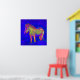 Una cebra de estilo pop de colores vivos con colores de arcoiris psicodélicos sobre un fondo azul.