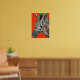 Reproducción de una pintura original de Georgia Pistolis. Se reproduce digitalmente con fondo rojo. La imagen se hace en otros tres colores y se agrupa bien.