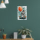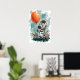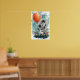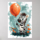 Agrega un toque de fantasía a tu espacio con este adorable cartel que presenta una pequeña cebra sosteniendo un gran globo naranja. El estilo de dibujos animados, las texturas pintadas a mano y el diseño juguetón lo hacen perfecto para una habitación de niños o una guardería. El fondo de color azul turquesa claro con pinceladas y flores naranjas vibrantes crean una atmósfera divertida y de celebración.
