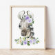 Póster Cebra, Safari, Flores Moradas, Género Neutral