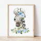 Agrega los toques finales a la habitación de tu bebé o niño con estas hermosas impresiones de arte. El diseño cuenta con cebra, flores de acuarela azules y vegetación.