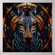 Sumérjase en un mundo de color y creatividad con esta impresionante obra de arte de cebra al estilo de mosaico. Este diseño cautivador muestra una cara de cebra compuesta por formas geométricas vívidas, creando un patrón vivo e intrincado. Los tonos dominantes de azul, rojo, naranja y amarillo se mezclan sin inconvenientes para resaltar las llamativas rayas y los ojos expresivos de la cebra. La decoración es circular, de inspiración cristalera, y el conjunto es muy animado y único. Perfecto para los amantes del arte y de la vida silvestre, esta excepcional obra de arte es ideal para impresiones, posters y varios objetos de decoración casera, aportando un toque de encanto exótico y audacia a cualquier espacio.