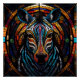 Sumérjase en un mundo de color y creatividad con esta impresionante obra de arte de cebra al estilo de mosaico. Este diseño cautivador muestra una cara de cebra compuesta por formas geométricas vívidas, creando un patrón vivo e intrincado. Los tonos dominantes de azul, rojo, naranja y amarillo se mezclan sin inconvenientes para resaltar las llamativas rayas y los ojos expresivos de la cebra. La decoración es circular, de inspiración cristalera, y el conjunto es muy animado y único. Perfecto para los amantes del arte y de la vida silvestre, esta excepcional obra de arte es ideal para impresiones, posters y varios objetos de decoración casera, aportando un toque de encanto exótico y audacia a cualquier espacio.