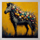 Una cebra magnífica con muchas flores sobre un fondo amarillo