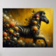 Póster Cebra y flores magníficas en un fondo amarillo