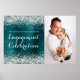 Póster Celebración de compromiso azul teal plateado brill