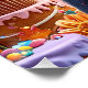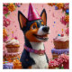 Perro feliz con un gorra fiesta en medio de quequitos coloridos, flores y decoraciones festivas, celebrando una ocasión emocionante y alegre.