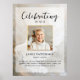 El póster conmemorativo perfecto para saludar a familiares y amigos cuando entren a la celebración de la vida de su ser querido. El diseño presenta una foto personal cuadrada, 5 líneas de texto personalizado y una foto de fondo de una hermosa paloma blanca. Puede cambiar fácilmente esto con su propia foto de fondo. Clásico pero único, esta plantilla es muy fácil de personalizar y también hará un hermoso recuerdo conmemorativo.