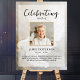 El póster conmemorativo perfecto para saludar a familiares y amigos cuando entren a la celebración de la vida de su ser querido. El diseño cuenta con una foto personal cuadrada, 5 líneas de texto personalizado y una foto de fondo de una hermosa paloma blanca. Puede cambiar fácilmente esto con su propia foto de fondo. Clásico pero único, esta plantilla es muy fácil de personalizar y también hará un hermoso recuerdo conmemorativo.