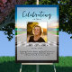 El póster conmemorativo perfecto para saludar a familiares y amigos cuando entren a la celebración de la vida de su ser querido. El diseño presenta una foto personal cuadrada, 5 líneas de texto personalizado y un fondo de una pista de carreras. Puede cambiar fácilmente esto con el fondo de su propia foto. Clásico pero único, esta plantilla es muy fácil de personalizar y también hará un maravilloso recuerdo conmemorativo.