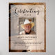 El cartel conmemorativo perfecto para saludar a familiares y amigos cuando entren a la celebración de la vida de su ser querido. El diseño presenta una foto personal cuadrada, 5 líneas de texto personalizado y una foto de fondo de botas y sombrero de vaquero. Puede cambiar fácilmente esto con su propia foto de fondo. Clásico pero único: esta plantilla es muy fácil de personalizar y también hará un hermoso recuerdo conmemorativo.
