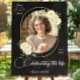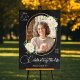 Crea un sentido homenaje con este elegante cartel conmemorativo de celebración de la vida. Con un suave fondo negro, delicadas flores blancas y una foto personalizable, este cartel conmemorativo en memoria honra la vida y el legado de su ser querido. Perfecto para exhibir en un funeral, servicio conmemorativo o celebración de la vida, también es un recuerdo conmovedor para la familia. Personalice con nombre, fechas y foto para un recuerdo significativo. (2212).