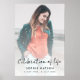 Cartel de funeral de foto moderna y minimalista para celebrar la vida de su ser querido en un estilo de diseño simple y limpio con una fuente de escritura a mano. El cartel se puede personalizar fácilmente con su propia foto y texto para crear un tributo especial para el funeral, memorial o celebración de la vida de su ser querido. La imagen mostrada es solo para fines ilustrativos y será reemplazada con su propia foto. La imagen del marcador de posición muestra a una joven con cabello largo y ondulado marrón con reflejos ombre que lleva una chaqueta de cuero, una camiseta de encaje naranja y jeans blancos. #funeral #cartel #decoración