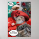 "¡Miau! ¡Este sombrero con Santa me abre el apetito!" Princess Tatus luciendo un elegante y chic sombrero rojo con una paloma con sombrero de Santa entre bolas y adornos navideños. Fotografía y diseño gráfico digital por Bulgan Lumini (c) Princess Tatus y sus sombreros de celebridades.