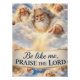 Una atmósfera de alegría divina e inspiración en su hogar con este impresionante cartel celestial. El arte presenta múltiples figuras celestiales sonrientes con cabello blanco y barbas que irradian calor y sabiduría desde una nube suave y brillante en el medio. Una pancarta prominente en el centro lleva el poderoso mensaje sé como yo alaba al Señor que sirve como un alegre recordatorio diario de fe y gratitud.