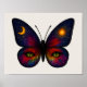 This striking butterfly illustration blends celestial symbolism with fierce, mystical energy. Saturated feathered rainbow hues are set against a star filled night sky. A glowing crescent moon rests in one upper wing, balanced by a radiant sun in the other. The lower wings reveal jewel green cat eyes, giving the piece an otherworldly presence. This beautiful boho artwork is set on cloud white, creating an enchanting poster that will add cosmic energy to your space.