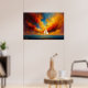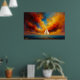 A lone sailboat glides across a tranquil sea, its white sails illuminated by the fiery breath of a swirling sky. Reds, oranges, and golds collide with deep blues and purples, creating a celestial storm of color and emotion. Above, a flock of birds cuts through the chaos, hinting at movement, freedom, and unseen destinations.