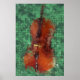 Esta bonita y gran pintura de un violonchelo sobre un fondo abstracto verde crea una hermosa imagen de instrumento musical.