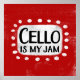 "Cello Is My Jam" es un divertido diseño de texto con una forma de acento blanco rodeado de puntos blancos y caprichosos.