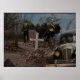Medios mixtos divertidos de Halloween Un viejo auto oxidado se sienta en el primer plano de una escena de cementerio con lápidas y figuras espeluznantes. El telón de fondo presenta un paisaje desolado y una figura siniestra y sombría vestida de negro junto a una lápida con la leyenda "John Martin". Ninguna imagen artificial hecha humana pertenece a Colleen Cornelius, no copie en parte o en su totalidad. Puedes ayudarme a promover mi arte, pero no me robes el arte y ponlo en tus propios productos. Debes tener permiso escrito en un contrato para usar mi arte fuera de la promoción de mi sitio web (debes tener citas). Gracias