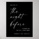 Bienvenidos a sus invitados con estilo con este elegante letrero negro que dice "Bienvenidos a la Noche Antes". Perfecto para establecer el tono en la cena de ensayo de su boda. Con tipografía minimalista moderna, este letrero celebra la noche especial de la pareja antes del gran día. El fondo negro atemporal y el texto blanco lo hacen versátil para cualquier tema de boda, ya sea clásico, moderno o chic. Disponible como descarga digital para imprimir fácilmente en casa o en su tienda de impresión favorita.