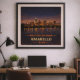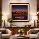 Captura el horizonte expansivo y las luces brillantes de la ciudad del Panhandle de Texas con este póster del Centenario de Amarillo. Conmemorando el 100º aniversario de la Ruta 66, esta obra de arte inspirada en el vintage presenta el horizonte de Amarillo reflejado en el agua bajo un vasto cielo nocturno estrellado. El diseño combina el calor dorado del sol poniente con tonos índigo profundos, celebrando el espíritu rudo y la importancia histórica de esta importante parada en la Madre del Camino.