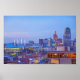 "Downtown Kansas City, Missouri, at Dusk" por Catherine Sherman Downtown Kansas City, Missouri, está iluminado con muchas luces de colores cuando llega el atardecer. A la izquierda está el icónico Centro Kauffman para las Artes Escénicas en el centro. Detrás del centro se encuentran los pilones de la Sala Bartle y la cúpula dorada de la Catedral Católica de la Inmaculada Concepción. En el centro se encuentra Webster House con campanario, ahora sede de la Sinfonía de Kansas City. El Webster School, de arquitectura románica, abrió sus puertas en 1886 y sirvió al distrito escolar de Kansas City durante 45 años. Luego se convirtió en un restaurante y una tienda con antigüedades y arte por muchos años. La Escuela Webster fue inscrita en el Registro Nacional de Lugares Históricos el 2 de septiembre de 1982. Otro edificio en el horizonte es el histórico edificio Power & Light, construido en 1933 con muchos elementos Art Déco. El edificio más alto es One Kansas City Place, que es un ejemplo de los modernos edificios de oficinas de vidrio construidos en el centro de Kansas City en los años 80. Es el edificio más alto de Misuri. Varios edificios de hotel forman parte del paisaje. En primer plano a la derecha, la gente se reúne en una sala de conferencias de un hotel del Crown Center.