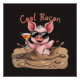 Cerdito con gafas de sol sentado en el barro con un cóctel y el eslogan "Cool Bacon" en un cartel de fondo negro (también disponible para descarga digital).
