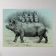 Cerdo con lechones animales de granja vintage gradiente de crema azul