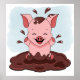 Póster Cerdo Rosa Cute Jugando En El Barro