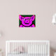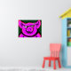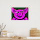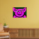Un bonito cerdo rosa brillante con una sonrisa dulce y unas pestañas rosas largas y bonitos sobre un fondo verde oscuro