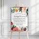 Letrero elegante de boda invita a los invitados a no usar dispositivos electrónicos durante la ceremonia. El diseño cuenta con una corona floral de verano y otoño de estilo rústico en acuarela con hermosas rosas, dalias, flores de peonía y vegetación, en una paleta de otoño preciosa de rojo borgoña, amarillo dorado, naranja melocotón, rosa suave y tonos de verde.