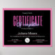 Póster Certificado De Finalización De Premios Pink Y Blac
